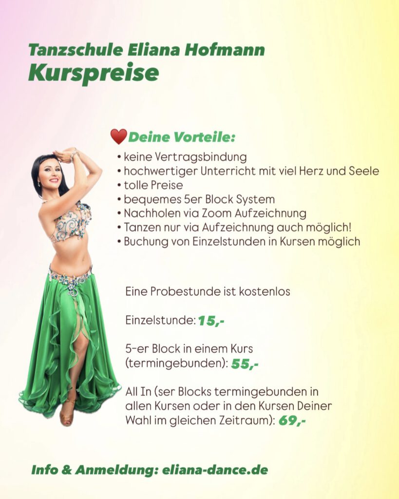 Bei Fragen stehe ich Dir gerne zur Verfügung: info@eliana-dance.de